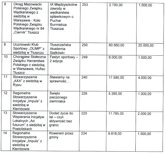 Rankingi ofert i przyznanego dofinansowania przedstawiają się następująco: