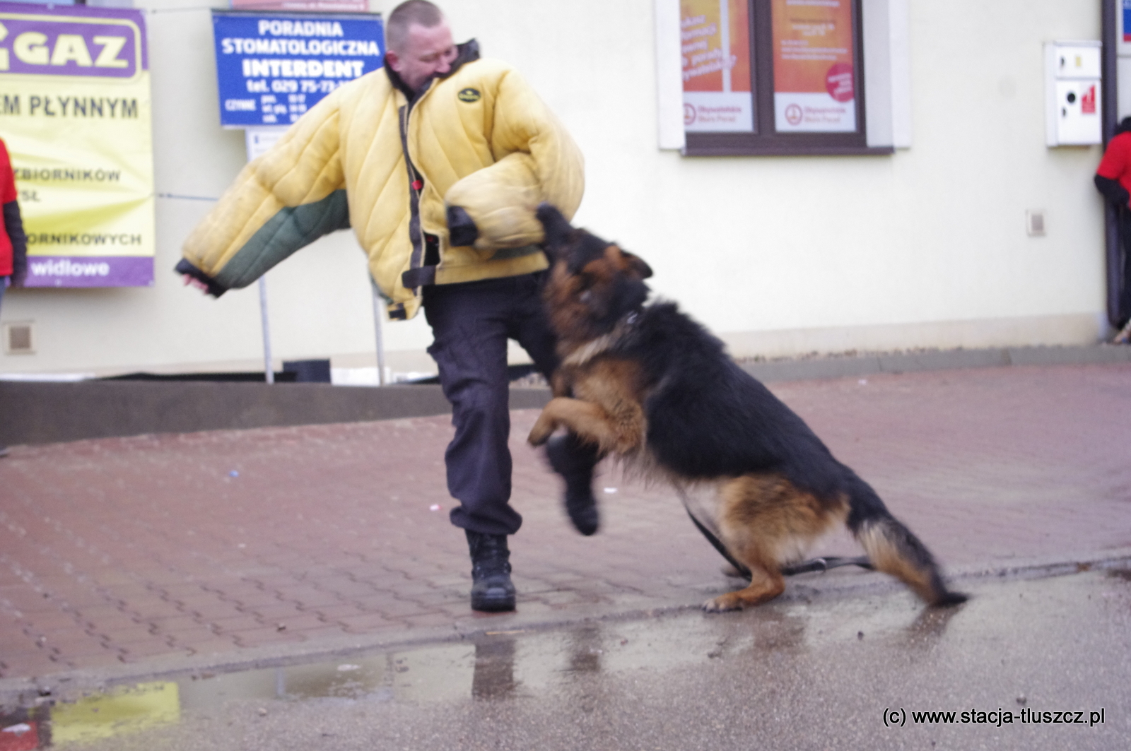 Policjanci z Komendy Powiatowej pokazali tresurę psa policyjnego oraz sposób, w jaki zatrzymuje on niebezpiecznych przestępców. Misiek – bo tak wabił się pies – okazał się bardzo skuteczny (fot. M. Puławski)