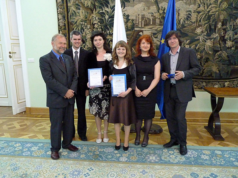 Finał konkursu Kancelarii Prezydenta RP dla dziennikarzy "Blaski i cienie demokracji lokalnej". Od lewej stoją: Minister Jacek Michałowski, redaktor naczelny ST Maciej Puławski, Aleksandra Puławska, wyróżniona w konkursie Monika Kur, pani Barbara Stasiak oraz zasiadający w jury Krzysztof Skowroński