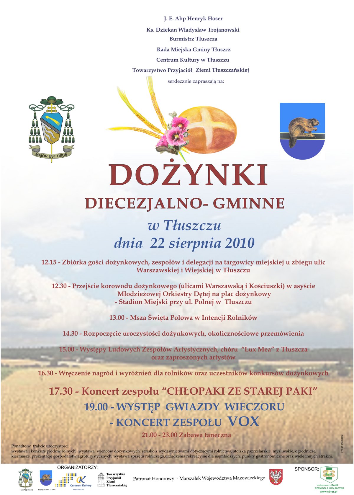 W imieniu Organizatorów zapraszamy na Dożynki Diecezjalno – Gminne w Tłuszczu dnia 22 sierpnia 2010 r.