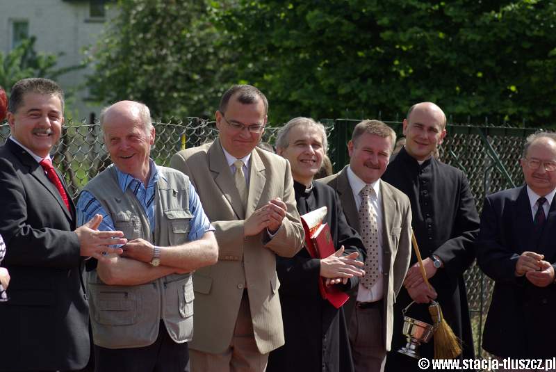 Po przecięciu wstęgi, ksiądz proboszcz Krzysztof Gołaś poświęcił boisko i sprzęty.