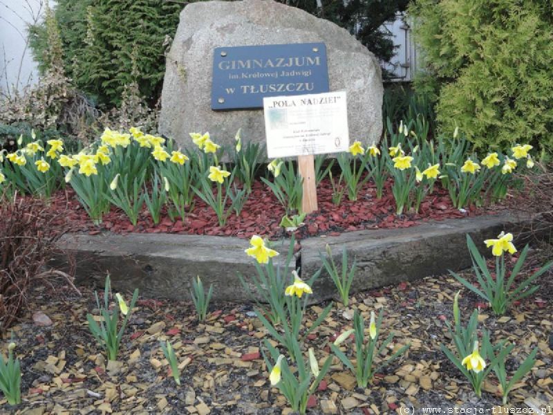 Wolontariusze z gimnazjum im. Królowej Jadwigi w Tłuszczu przystąpili do akcji Pola Nadziei w październiku ubiegłego roku. Tego dnia ks. Andrzej ze Zgromadzenia Księży Marianów z Warszawy opowiedział uczniom o pracy w hospicjum i o tym, jak ważna jest pomoc ludziom cierpiącym. Po spotkaniu wolontariusze zasadzili ponad 150 cebulek żonkili w przyszkolnym ogródku oraz zorganizowali m.in. kiermasze ozdób choinkowych i kartek walentynkowych, a dochód ze sprzedaży przekazali na potrzeby hospicjum.