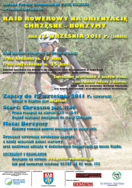 Starosta Wołomiński Piotr Uściński serdecznie zaprasza na RAJD ROWEROWY NA ORIENTACJĘ CHRZĘSNE – BORZYMY dnia 17 WRZEŚNIA 2011 r.