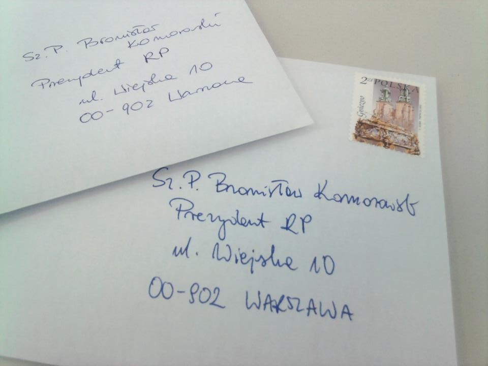 Wyślijcie Państwo e-mail (tutaj przygotowany WZÓR) na adres listy@prezydent.pl lub wydrukujcie go i wyślijcie pocztą.