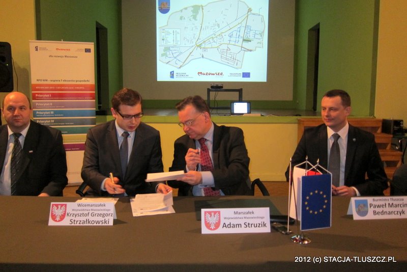 Marszałek Adam Struzik przed podpisaniem umowy zwrócił uwagę, że jest to jeden z większych projektów dotyczących gospodarki wodno-ściekowej w Regionalnym Programie Operacyjnym. Podkreślił, że konkurencja o zdobycie dofinansowania w konkursie była olbrzymia. Nie brakowało gratulacji dla obecnych tłuszczańskich władz, które doprowadziły do podpisania umowy, jak i dla poprzednich, które przygotowały i napisały projekt. Swojego entuzjazmu nie krył wicemarszałek Krzysztof Strzałkowski: – Bardzo cieszy, że wnioski gmin z terenu powiatu wołomińskiego są tak wysoko oceniane, tym bardziej, że mamy do czynienia w tym miejscu z pewnego rodzaju sztafetą samorządową. Władze poprzedniej kadencji przygotowały i złożyły wniosek o dofinansowanie, a obecne będą go realizować.