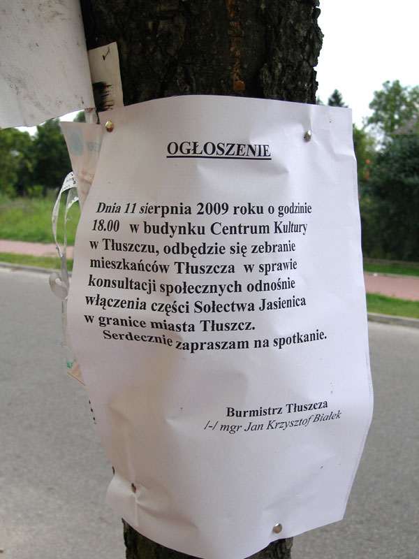 11 sierpnia 2009 r. godz. 18:00 w Centrum Kultury w Tłuszczu – zebranie dla mieszkańców Tłuszcza.