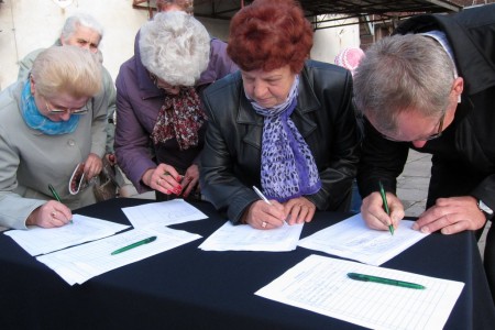 7 października 2012 roku, godz. 8.40, Akcja Społeczna „Wiadukt dla Tłuszcza” – Tym razem zbieraliśmy podpisy przy kościele Błogosławionych Męczenników Podlaskich. Rezultat: kolejne 500 podpisów poparcia dla budowy wiaduktu w Tłuszczu! Dziękujemy serdecznie Parafianom i Ks. proboszczowi Ireneuszowi Korporowiczowi za poparcie akcji, a radnym: Włodzimierzowi Malinowskiemu, Robertowi Szydlikowi i przewodniczącej rady osiedla Kolejowa Zofii Malinowskiej za pomoc w zbiórce podpisów (fot. AP)