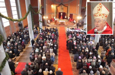 W wygłoszonej homilii JE abp Henryk Hoser podkreślał: – Cechą charakterystyczną tej parafii jest pochodzenie kamieni, które tu wmurowaliśmy. Jest tam kamień z Betlejem, z miejsca urodzenia Jezusa Chrystusa… Jest kamień z góry Karmel, odsyłający nas do wielkiego proroka Eliasza… Jest jeszcze kamień z Pratulina, miejsca męczeństwa Męczenników Podlaskich…