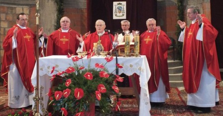 Następnie odprawiona została msza święta koncelebrowana przez Jego Ekscelencję, ks. dziekana Władysława Trojanowskiego i trzech kolejnych proboszczów parafii Bł. Męczenników Podlaskich: ks. Wiesława M. Bocheńskiego, ks. Dariusza Korbika i ks. Ireneusza Korporowicza.