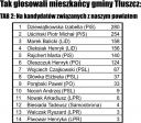 Ciekawa sytuacja miała miejsce w okręgu wyborczym nr 1 (siedziba komisji – Przedszkole Samorządowe, Tłuszcz). Nie udało się tutaj wyłonić lidera. Platforma Obywatelska oraz Prawo i Sprawiedliwość zdobyły tu równą (!) liczbę głosów – 356. Najwyższą frekwencję
