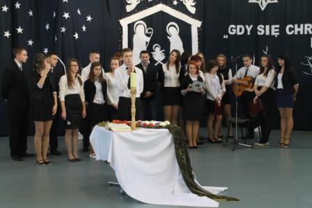 21 grudnia 2012 r. w hali sportowej – jak zawsze pięknie dostosowanej do klimatu i tematyki Bożego Narodzenia – spotkali się goście, nauczyciele, pracownicy obsługi i młodzież. Swoją obecnością zaszczycił nas Dziekan Dekanatu Tłuszcz ks. Władysław Trojanowski, Proboszcz Parafii pw. Błogosławionych Męczenników Podlaskich ks. Ireneusz Korporowicz, przyjaciel szkoły ks. dr Jan Gryciuk, Radny Powiatu Wołomińskiego pan Janusz Tomasz Czarnogórski, Przewodnicząca Rady Rodziców Zespołu Szkół w Tłuszczu pani Bożena Zych i członek zarządu stowarzyszenia „Pomóż dzieciom” pan Waldemar Wojtyra.