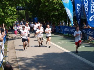 Pamiątkowe zdjęcia na tle naszej wieży ciśnień, kolejne przy tłuszczańskiej lokomotywie. Wzmocnieni grupą najmłodszych ruszamy w kierunku stadionu miejskiego. Tam czeka nas oficjalne zakończenie i udekorowanie własnoręcznie przygotowanymi przez inicjatorów biegu medalami.