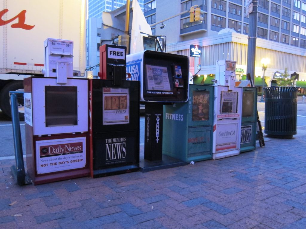 Dowiedziałem się, że w miasteczku funkcjonują dwa tygodniki – jeden płatny (1 USD), drugi bezpłatny. W tym miejscu muszę się zatrzymać przy sposobie dystrybucji prasy. Odbywa się to za pośrednictwem takich skrzynek stojących na ulicy. Aby wydobyć z takiej skrzynki płatną gazetę trzeba wrzucić monety i otworzyć drzwiczki.